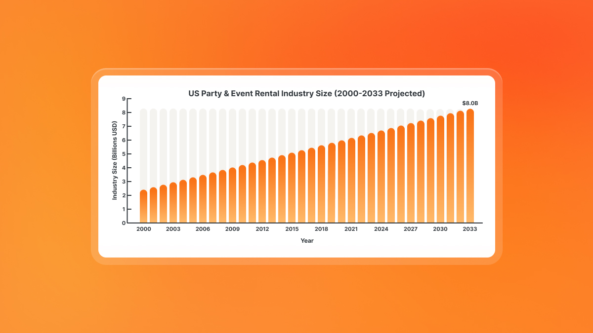In the US alone, the party and party rental industry is already valued at more than $5 billion. Fueled by the post-COVID boom and an ever-expanding list of partys to celebrate, it is predicted to reach $8 billion by 2033. Additionally, party rentals is a sector that’s less vulnerable to market fluctuations than other higher risk side gigs like real estate or financial markets.